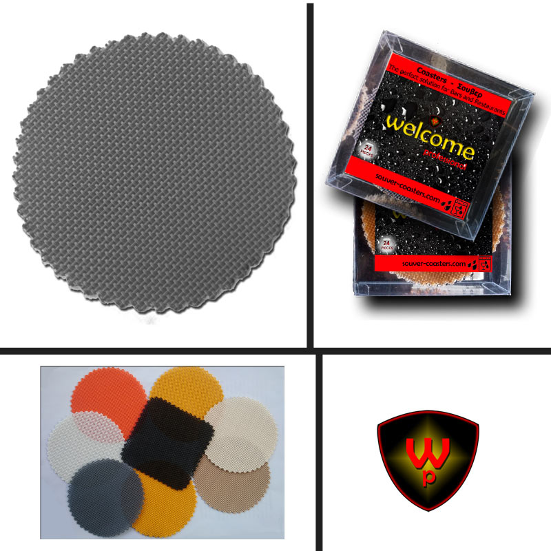 Cheap coasters. The package contains 24 pieces. Thin with high durability, they apply to any surface and for many uses. Waterproof. 9.3cm size