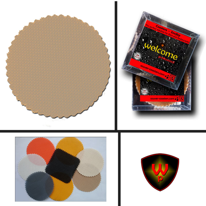 Coasters perforated. The package contains 24 pieces. Thin with high durability, they apply to any surface and for many uses. Waterproof. 9.3cm size